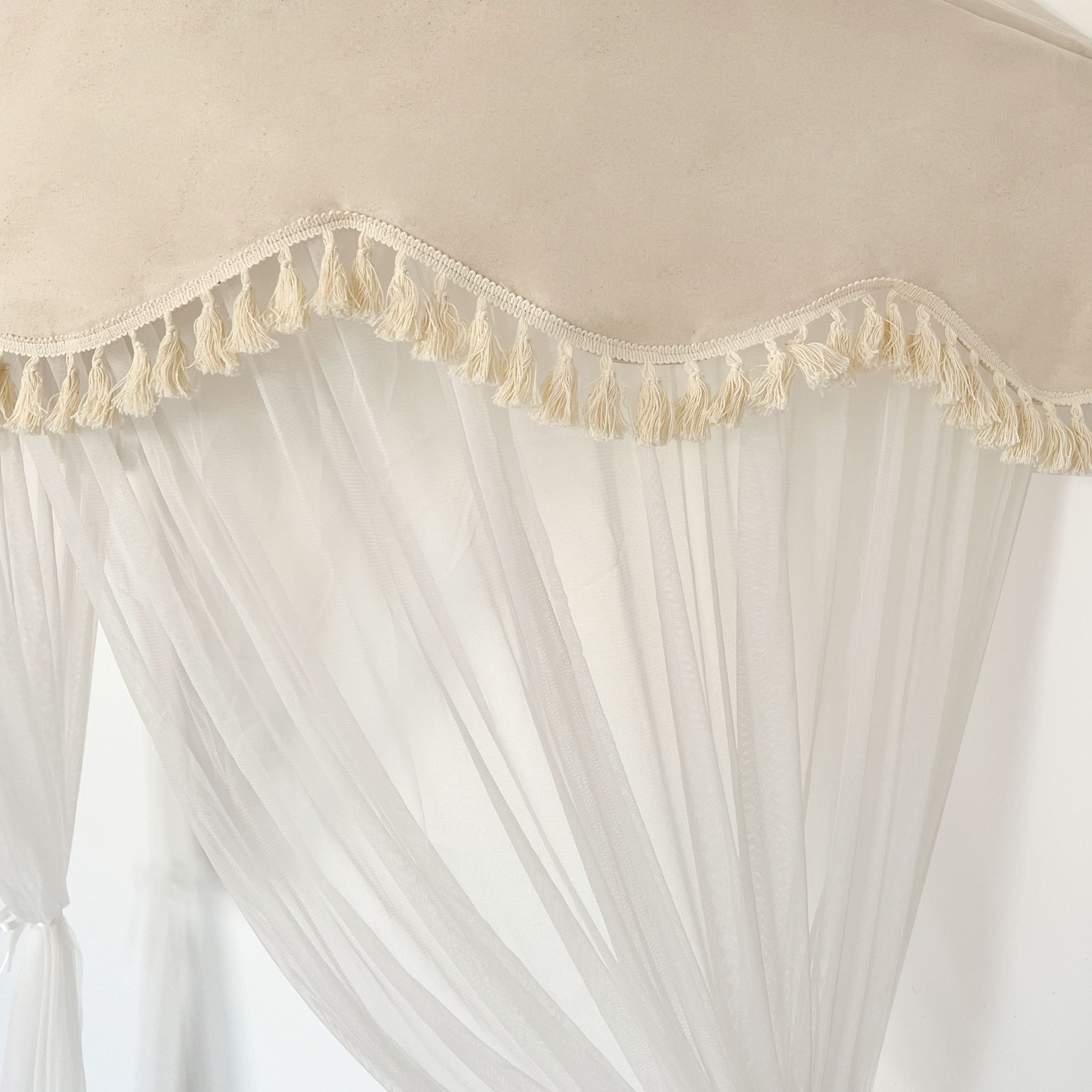Tül (%100 Polyester) ve çatı kısmı %65 pamuk, %35 polyester kumaştan dikilmiştir.