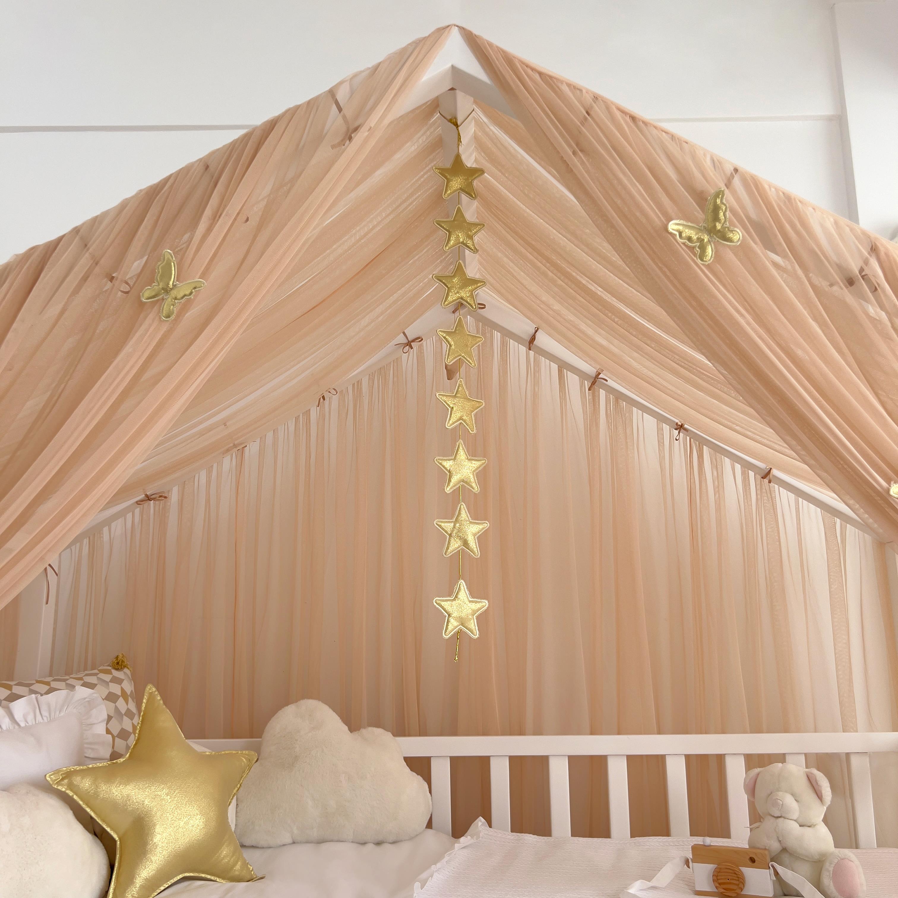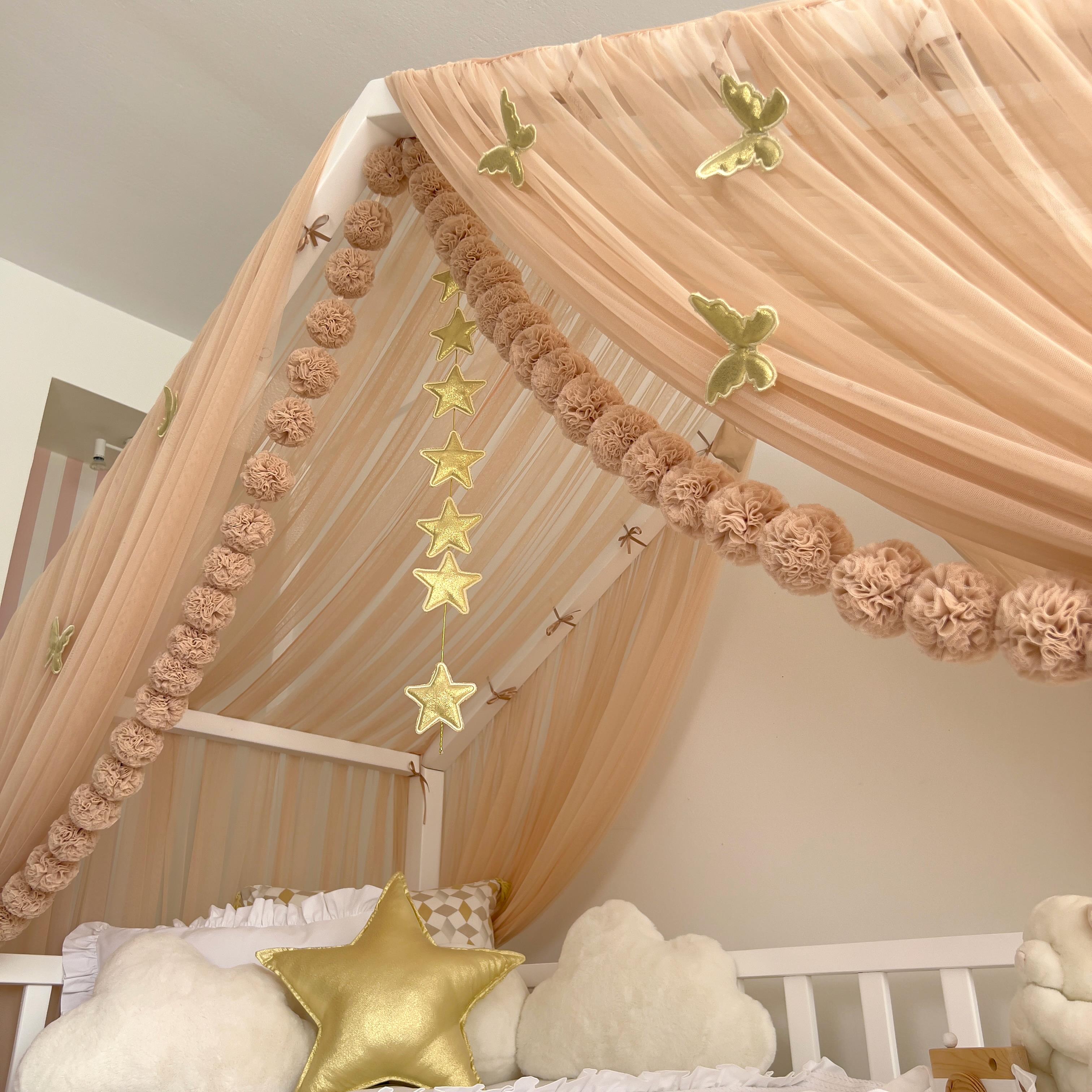 Çocuğunuzun odasına masalsı ve romantik bir hava katın. Sizin için tasarlanmış Champagne cibinlik yatağınıza, şıklık eklemek için mükemmel bir seçim olacaktır. Cibinliği yatak çerçevesine güvenli bir şekilde bağlamak için 4 adet kurdele ile birlikte gelir.