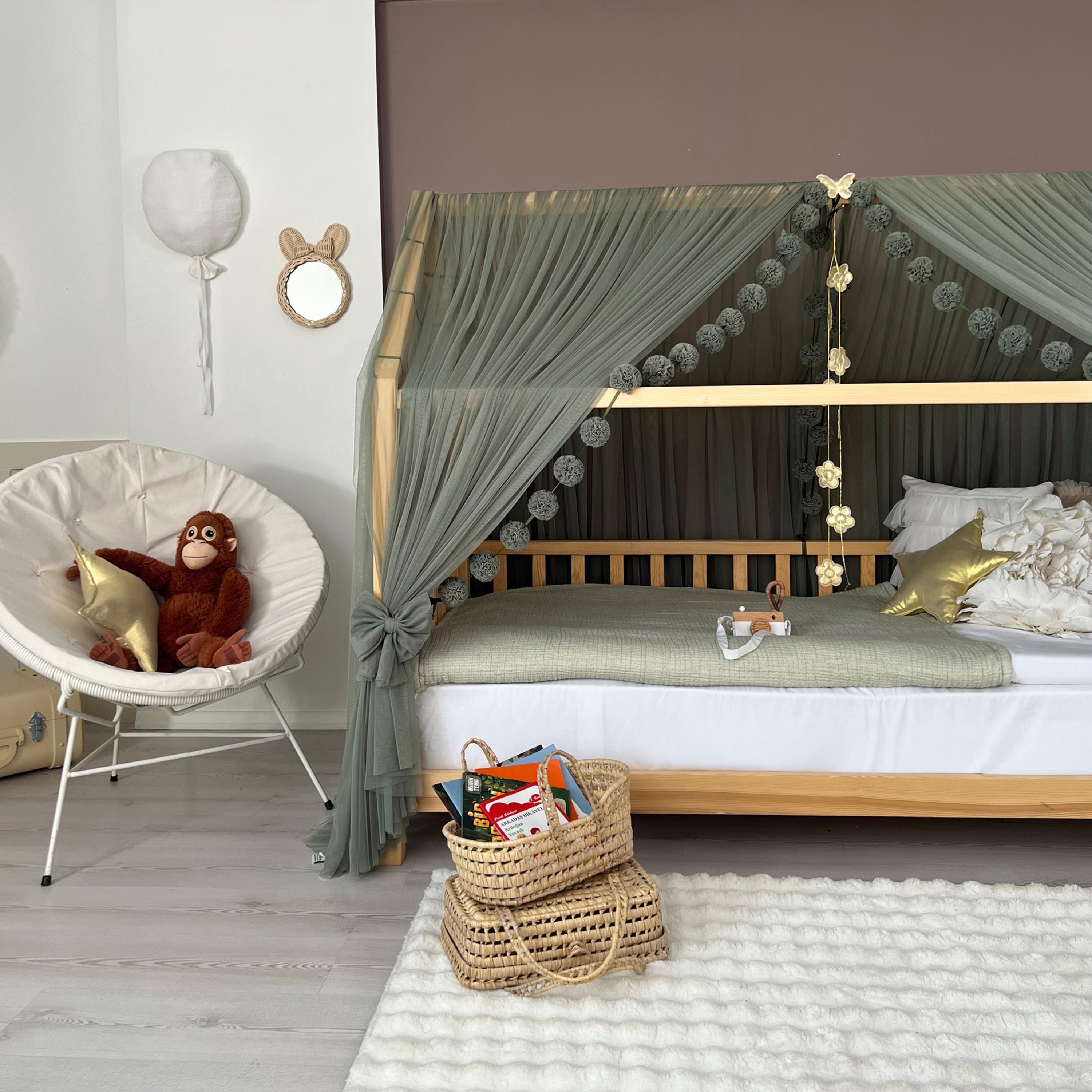 Çocuğunuzun odasına masalsı ve romantik bir hava katın. Sizin için tasarlanmış Khaki Green cibinlik yatağınıza, şıklık eklemek için mükemmel bir seçim olacaktır. Cibinliği yatak çerçevesine güvenli bir şekilde bağlamak için 4 adet kurdele ile birlikte gelir.