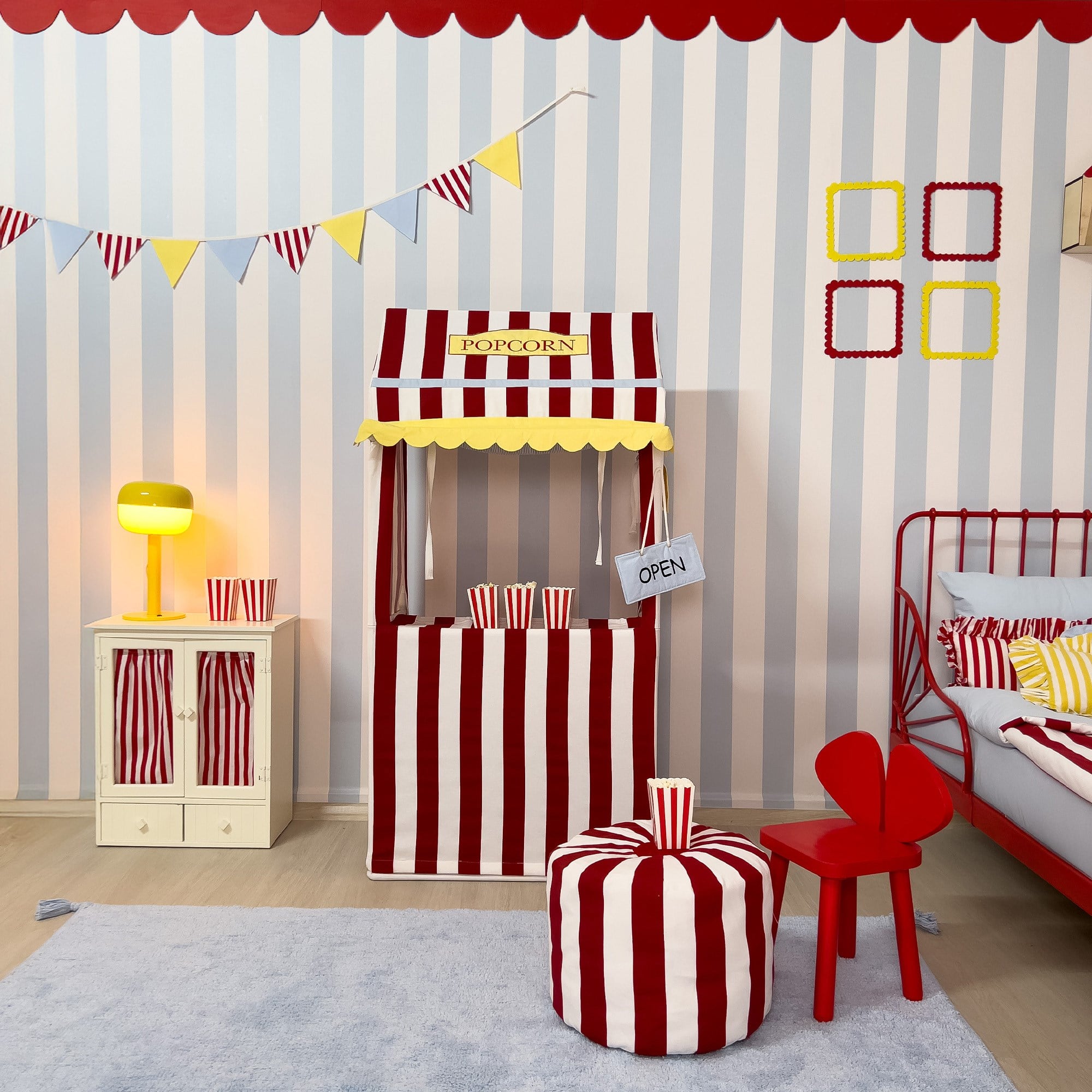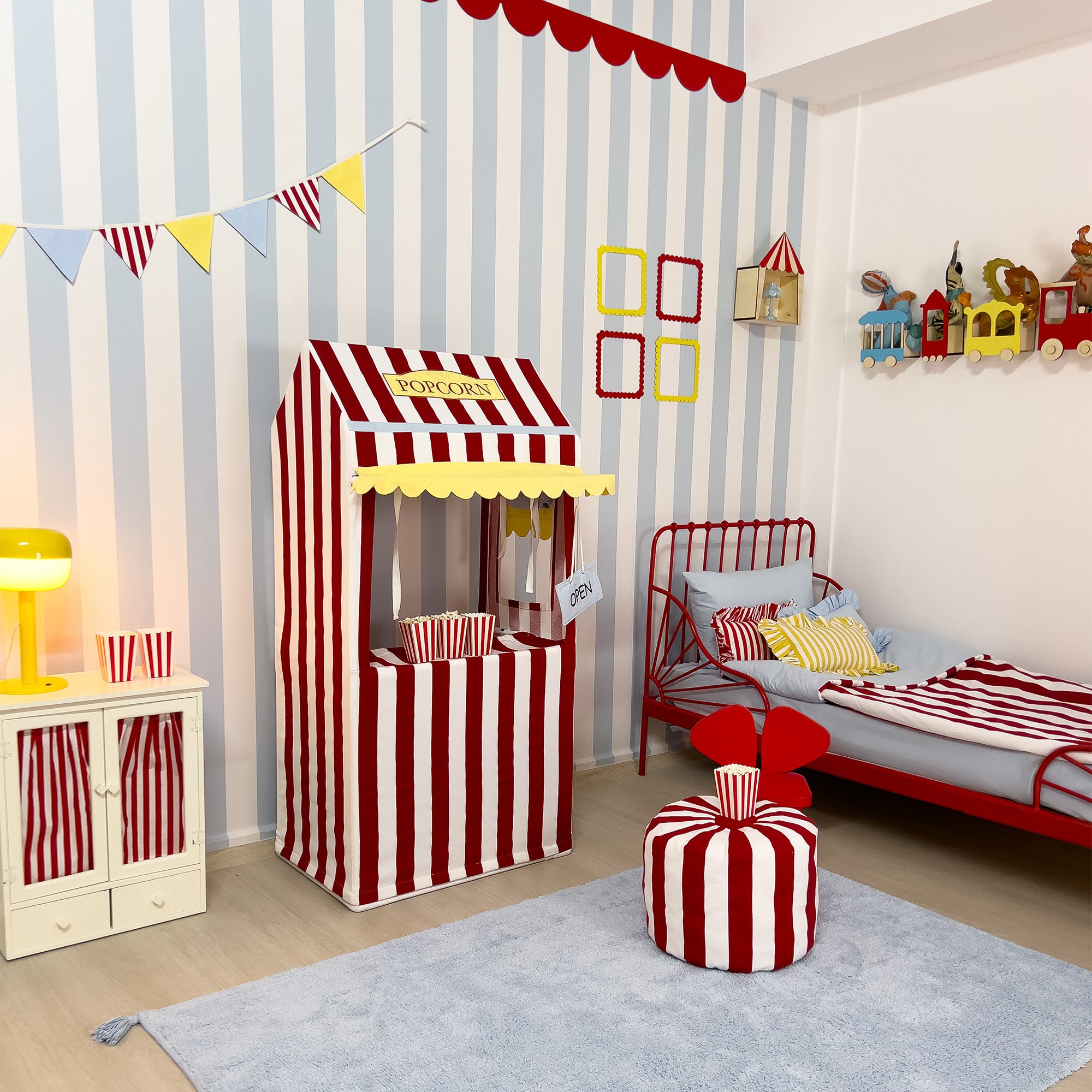 Hem dekoratif hem de eğitici bir oyun alanı sunan popcorn standı, çocuk odalarına renkli ve neşeli bir dokunuş katıyor.